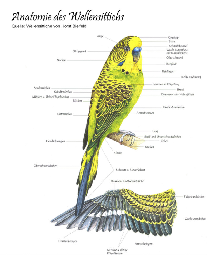 Wachshaut: Männchen blau, Weibchen beige bis braun |